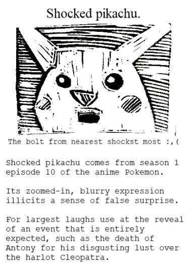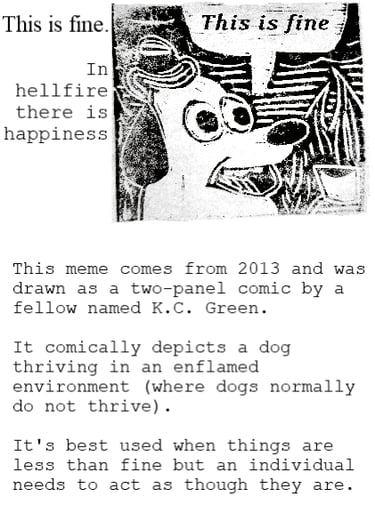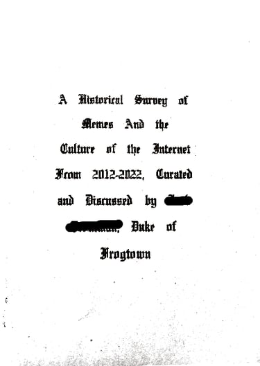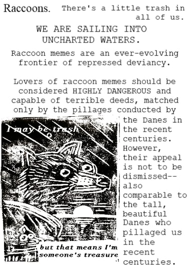 Above is a generous, digital preview of the chapbook. There is also a widget that points to an itch.io version, where one can digitally leaf-through the book. Here is a link to the PDF, if one may be so inclined to print and assemble it themselves. Otherwise, a copy of my finely-written and professionally-printed chapbook can be purchased on Etsy, along with a surprise print of one of the very memes covered in the book.